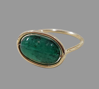 14k Gold Emerald Cabochon Ring • Natural Zambian Emerald