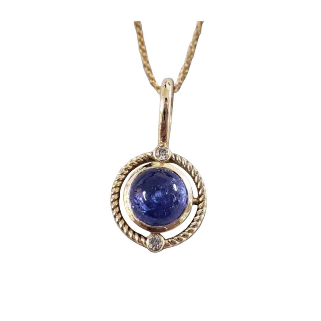 Whether paired with a fine gold chain or layered with other gemstone pendants, the Natural Tanzanite & Diamond 14k Gold Pendant complements every outfit with effortless grace.