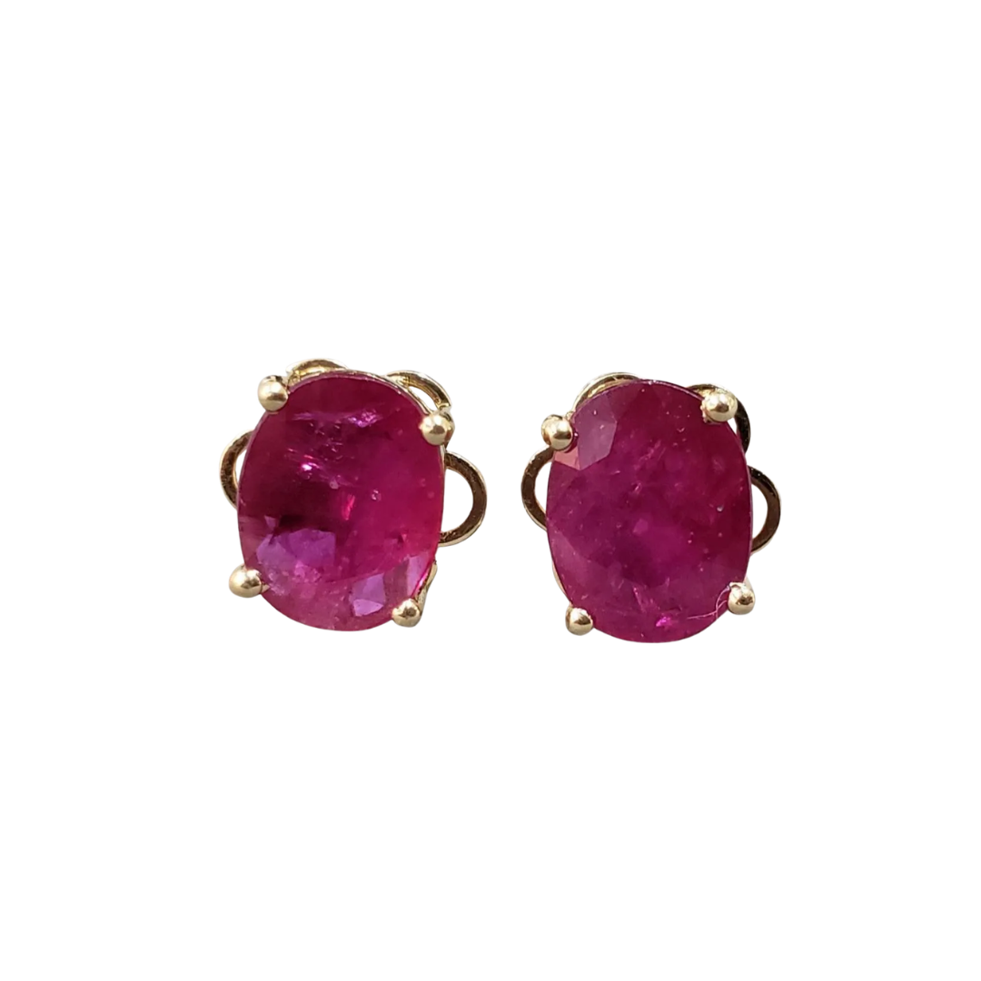 These natural ruby stud earrings feature carefully selected gemstones with excellent color and clarity. The oval shape enhances brilliance and depth, creating a timeless and elegant look. Ruby is also the birthstone for July and is believed to attract love, prosperity, and emotional strength.