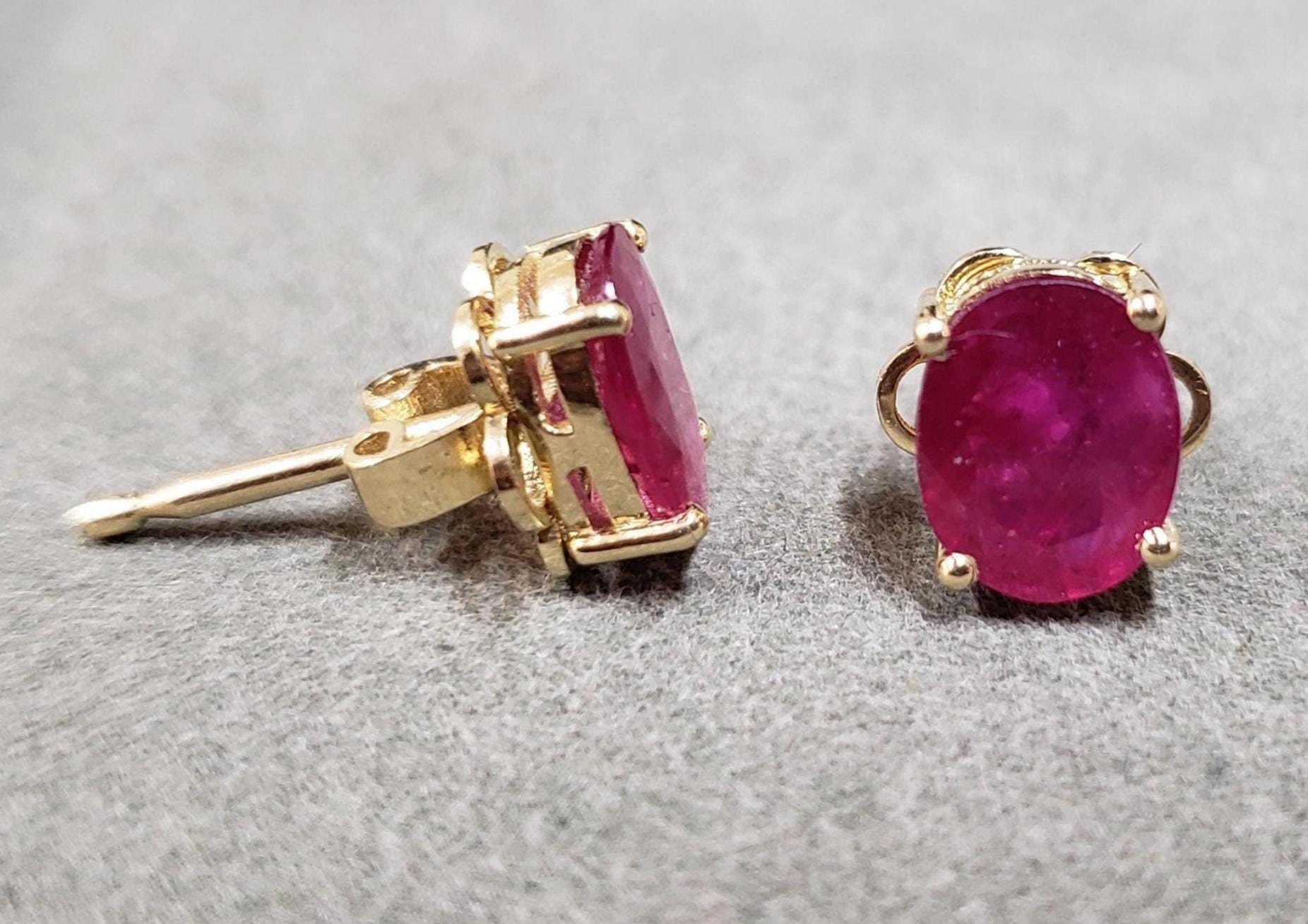 ❤️ Handmade 14k Gold Ruby Studs – Oval Gemstone Earrings