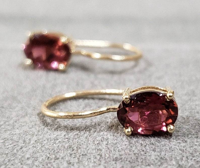 Handmade 14k Gold Pink Tourmaline Leverback Earrings