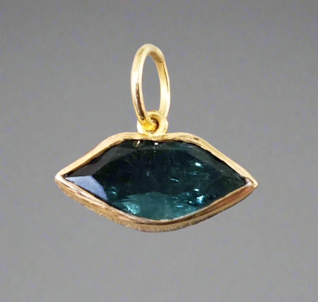 18k Gold Blue Tourmaline Lips Pendant