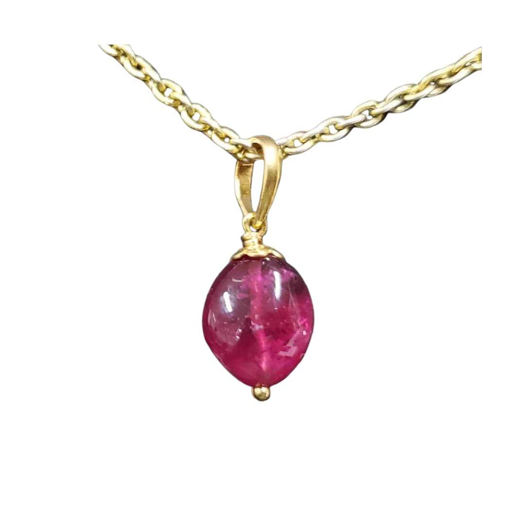 The Tumble Rubellite 18k Gold Pendant is a captivating handmade jewelry piece designed for women who love natural gemstone elegance. Featuring a genuine tourmaline bead in a tumble cabochon shape, this pendant combines vibrant rubellite hues with the luxury of solid 18k gold. Whether worn as a daily accessory or statement piece, this 18k gold gemstone pendant makes a unique addition to any jewelry collection.