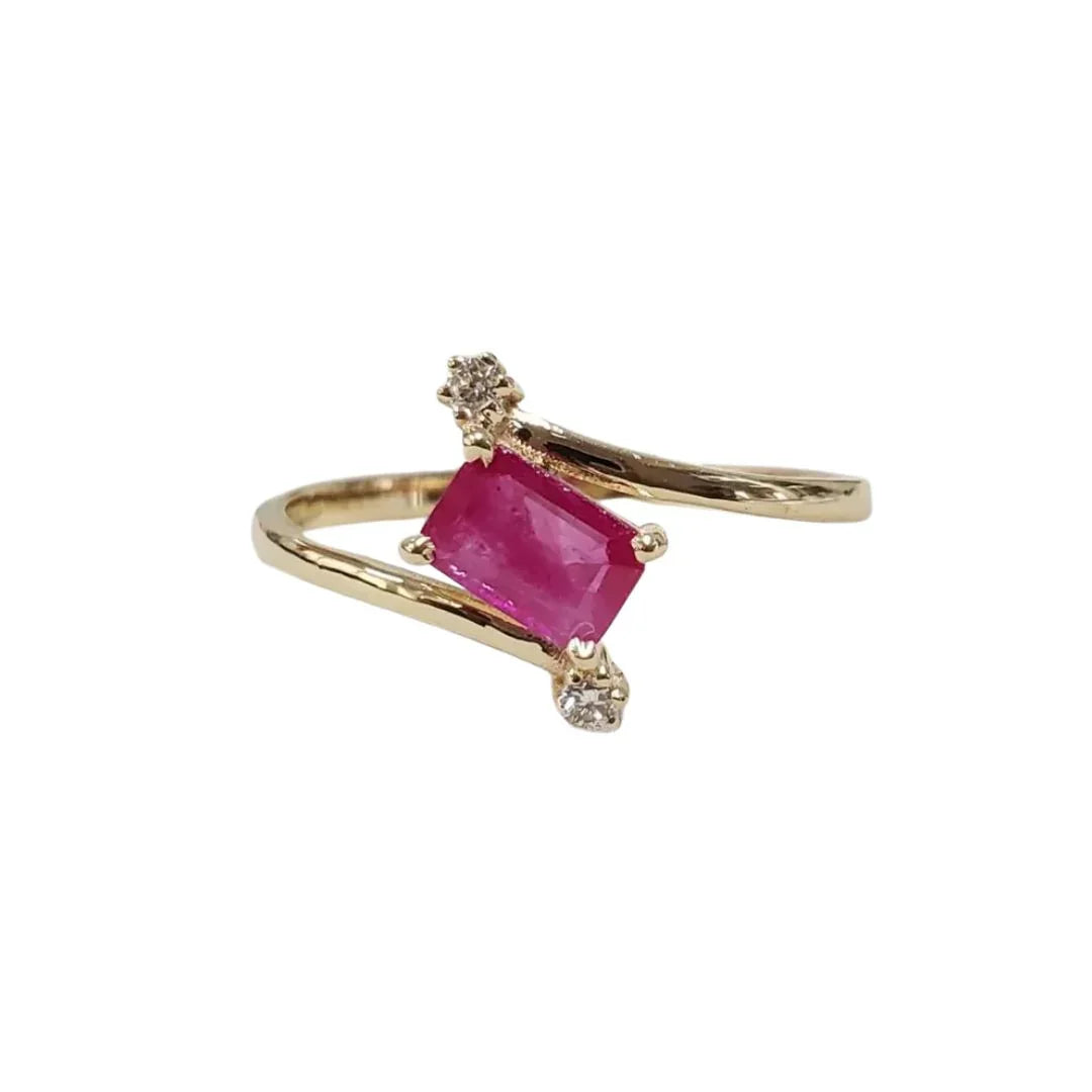 14k Gold Octagon Ruby Ring with Diamond Accents