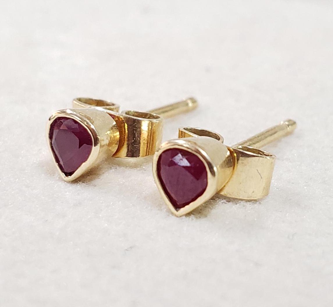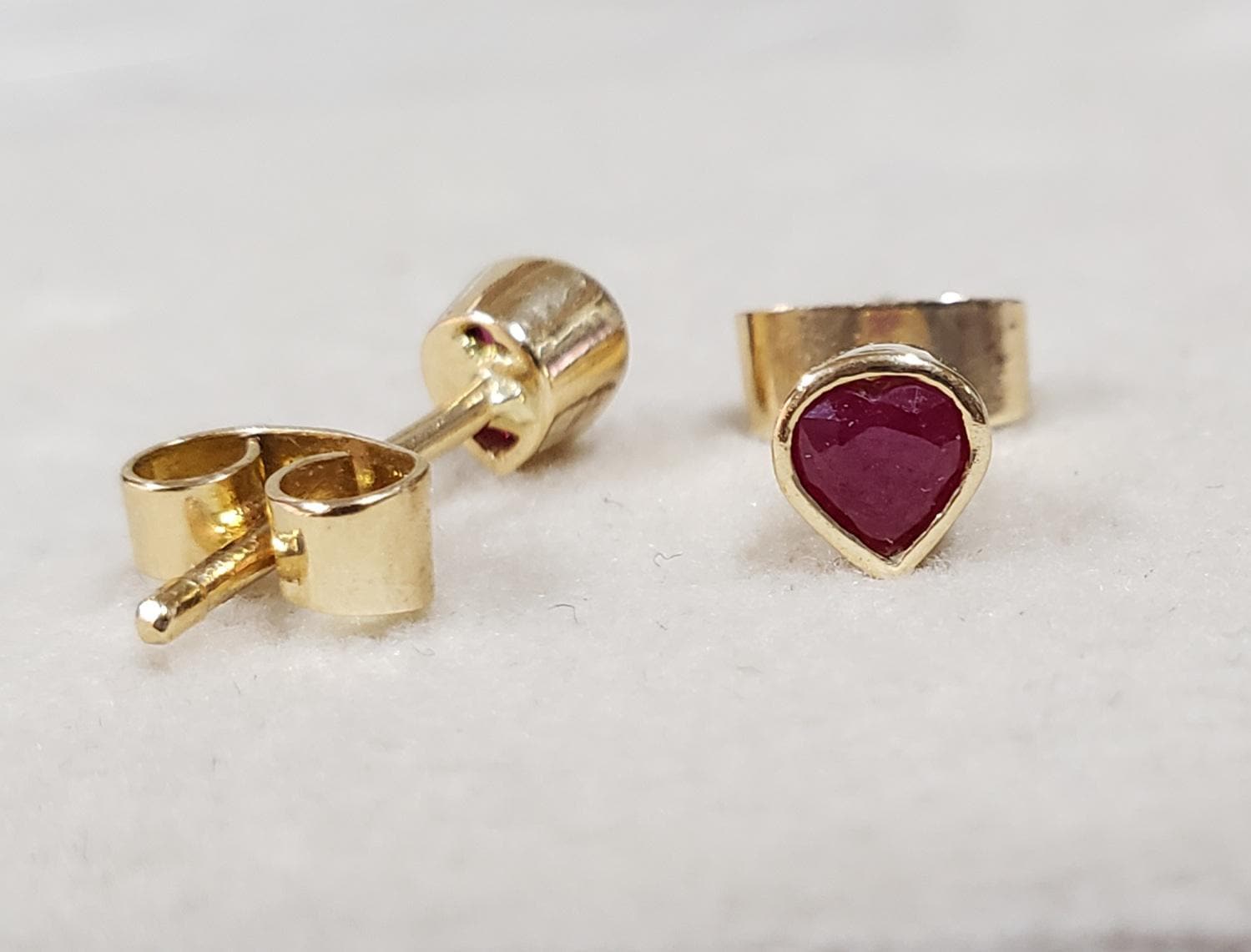 18k Gold Ruby Studs: Uncarved Heart Earrings, Precious Stone