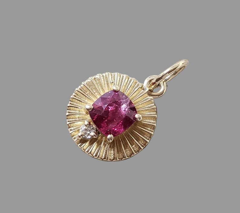 Dainty Pink Spinel & Diamond Pendant in 14K Gold