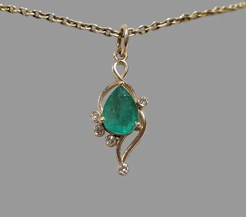 Experience timeless elegance with this Natural Emerald Teardrop Pendant in 14k Gold, accented by a sparkling natural diamond. Designed in a refined Art Deco style, this pendant blends vintage charm with modern luxury. Its graceful pear shape and vibrant green hue make it a standout piece for women who love fine gemstone jewelry.