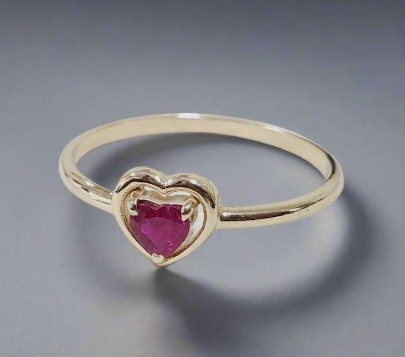 Solid 14k Gold Ruby Heart Ring – Dainty Stacking Ring
