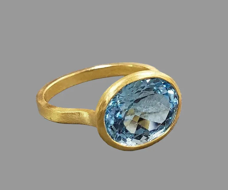 The Handmade AAA Sea Blue Topaz 18k Gold Ring: Dainty Matte Gold Jewelry is ideal for: