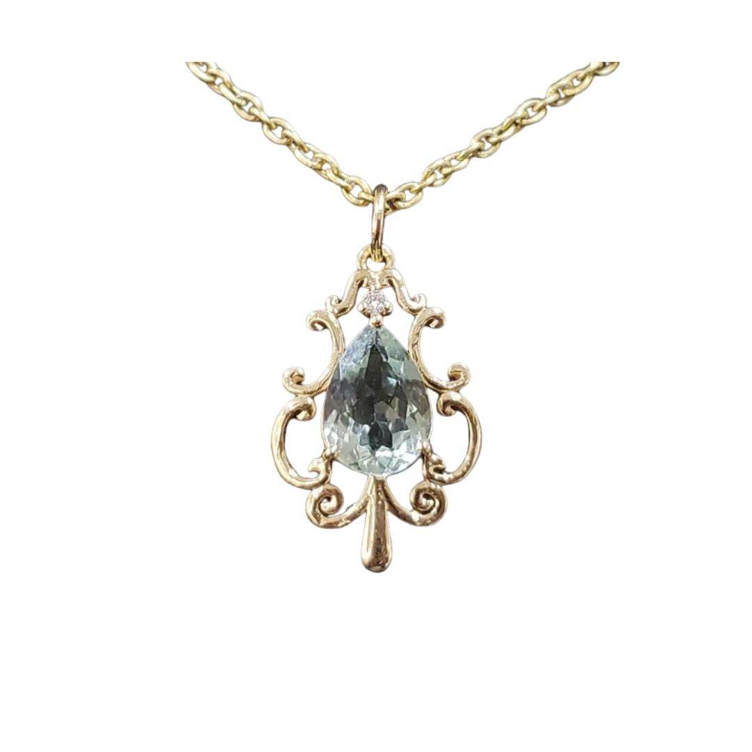 This Pear Green Tourmaline Diamond 14k Gold Pendant captures the essence of elegance and nature. Featuring a 2.20 ct natural green tourmaline in a pear shape, accented by sparkling diamonds, the pendant is set in solid 14k gold with a decorated tree design that symbolizes growth, strength, and renewal.