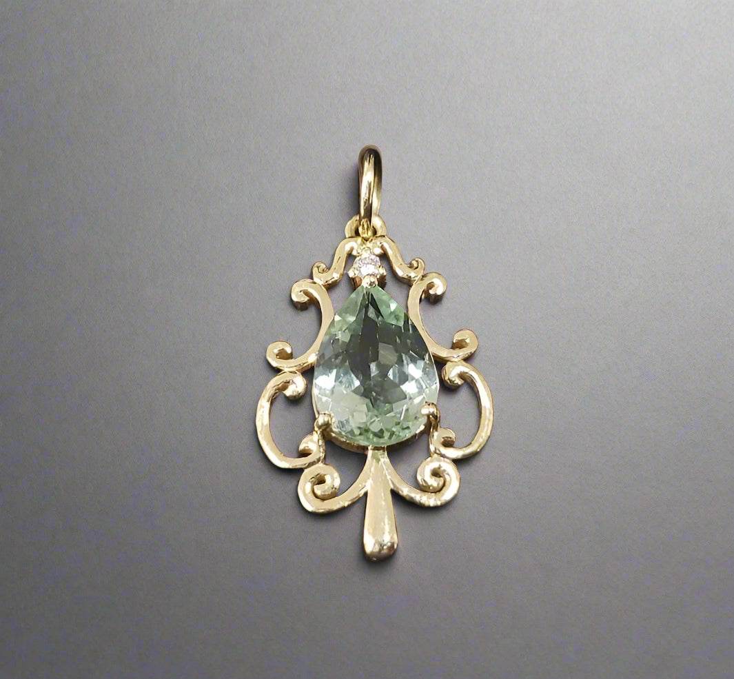Pear Green Tourmaline Diamond 14k Gold Pendant: Decorated Tree
