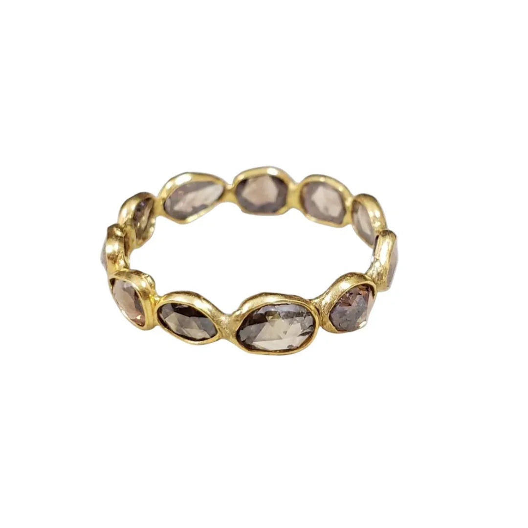 Brown Rose Cut Diamond Ring | 18k Gold Handmade Stacking Band