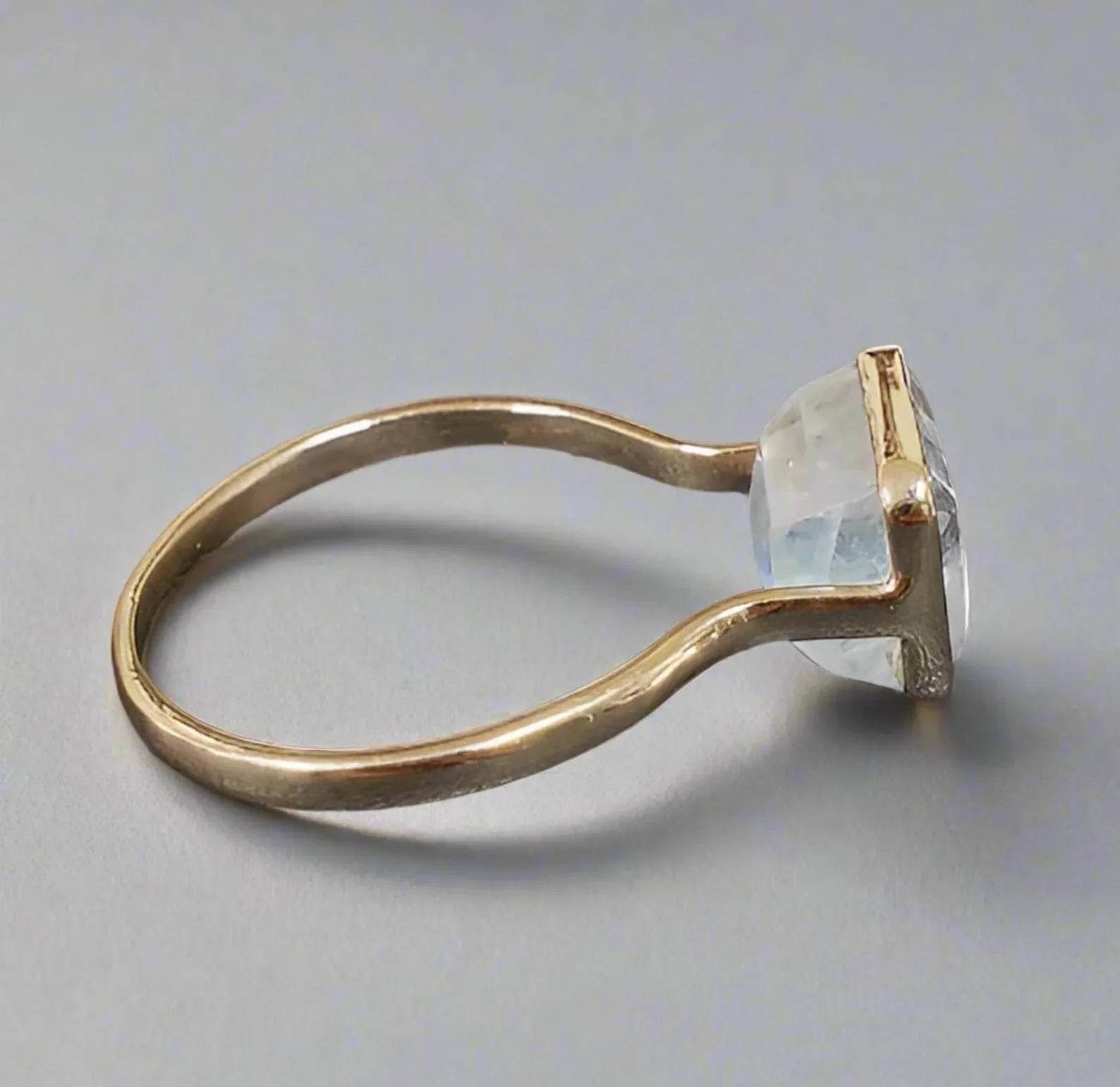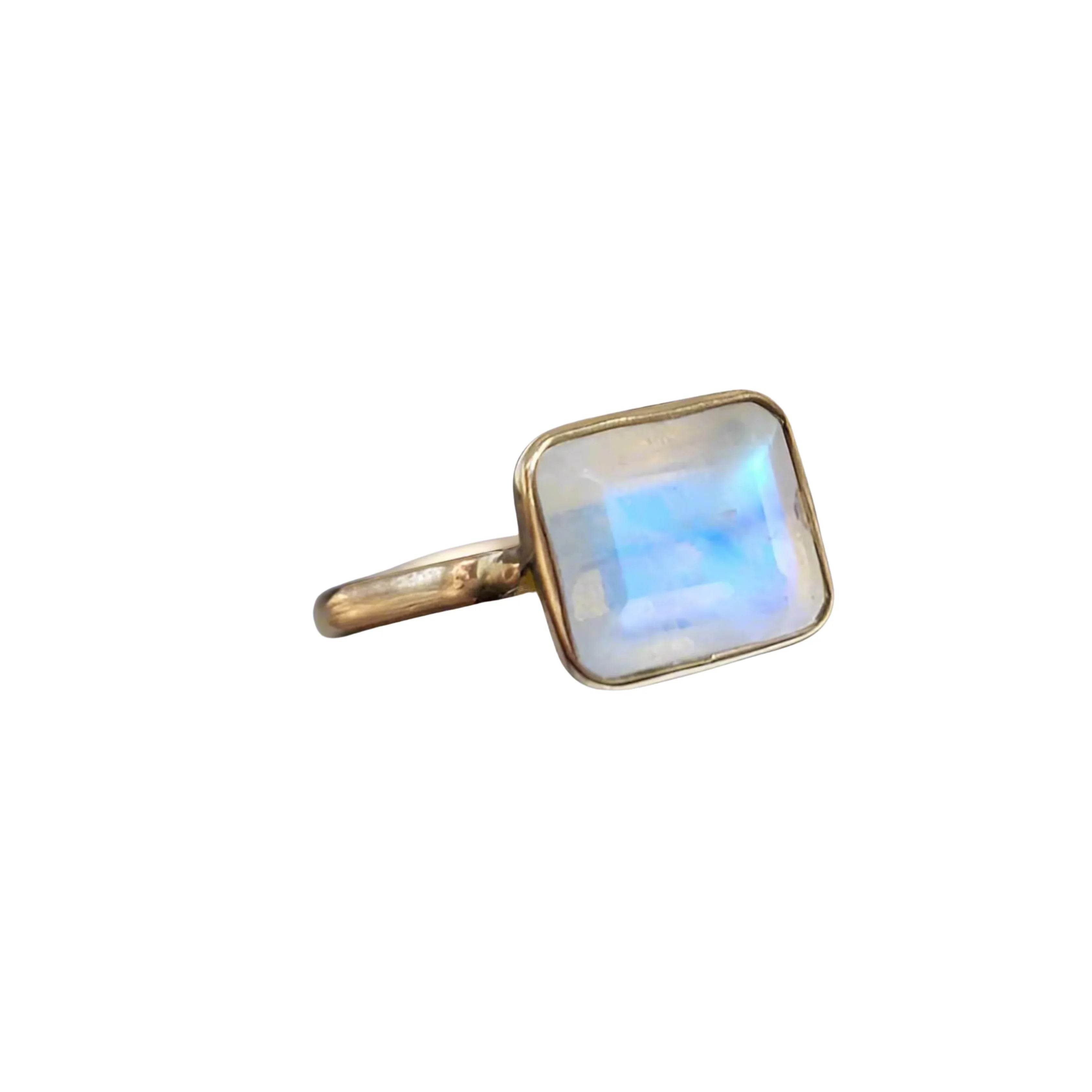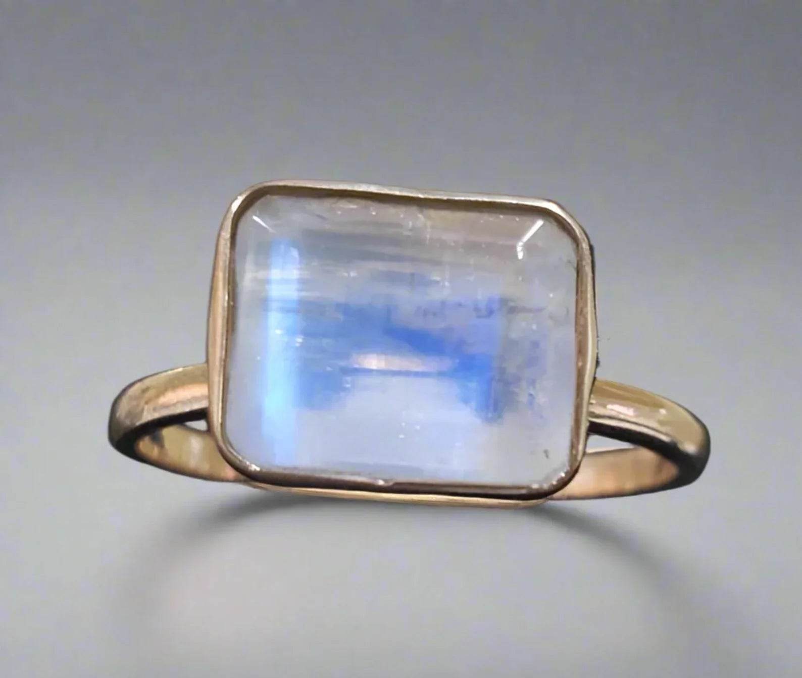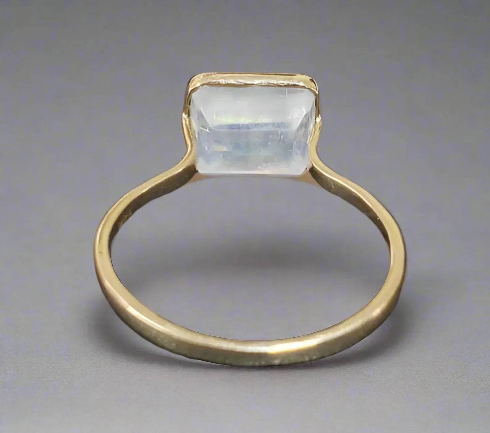 Moonstone 14k Gold Ring – Handcrafted Octagon Elegance