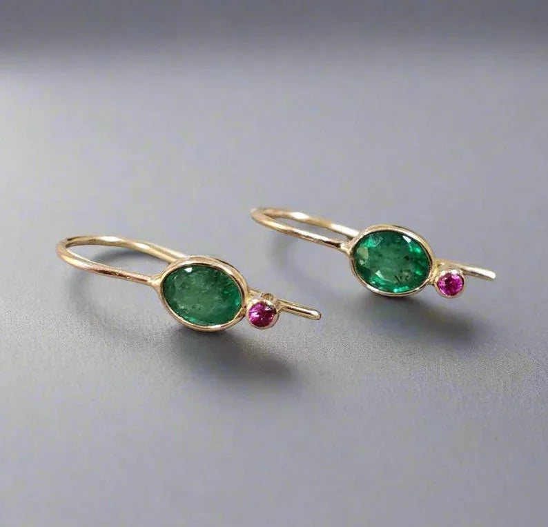 Indulge in the refined beauty of our 14k Gold Oval Zambian Emerald and Ruby Earring, expertly handcrafted to deliver luxury, elegance, and timeless charm. Designed for gemstone lovers who appreciate delicate jewelry with a bold presence, these earrings combine the lush green of AAA-quality Zambian emeralds with the fiery brilliance of fine rubies—creating a stunning color pairing that instantly commands attention.