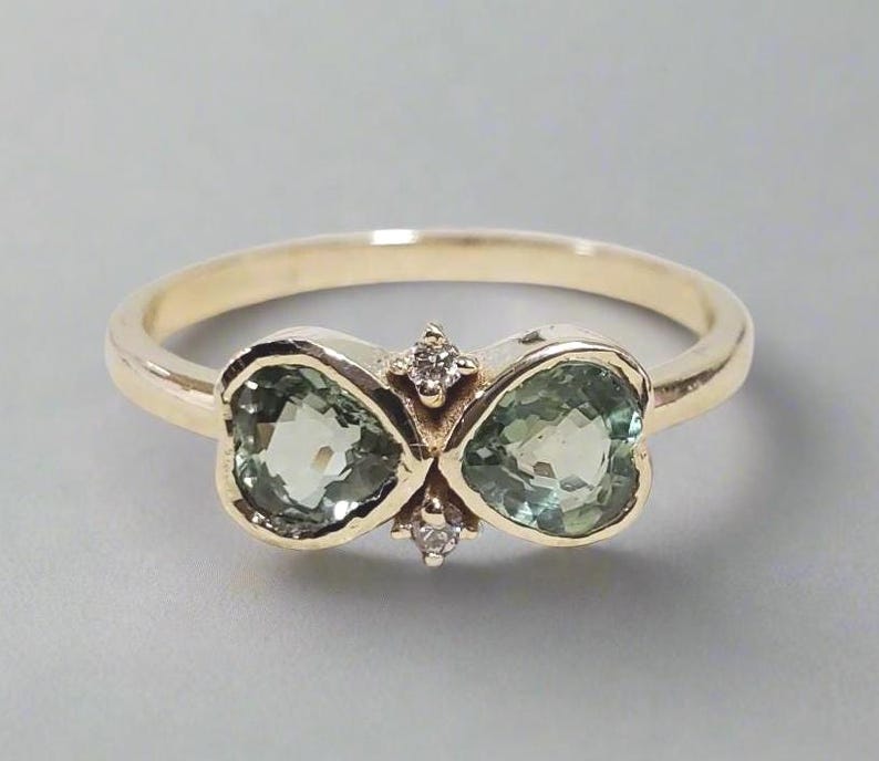 This Heart Shape Green Sapphire Ring is a perfect blend of romantic design and fine craftsmanship. The heart-cut sapphire creates a meaningful centerpiece, while the diamond accents add a soft, elegant sparkle.
