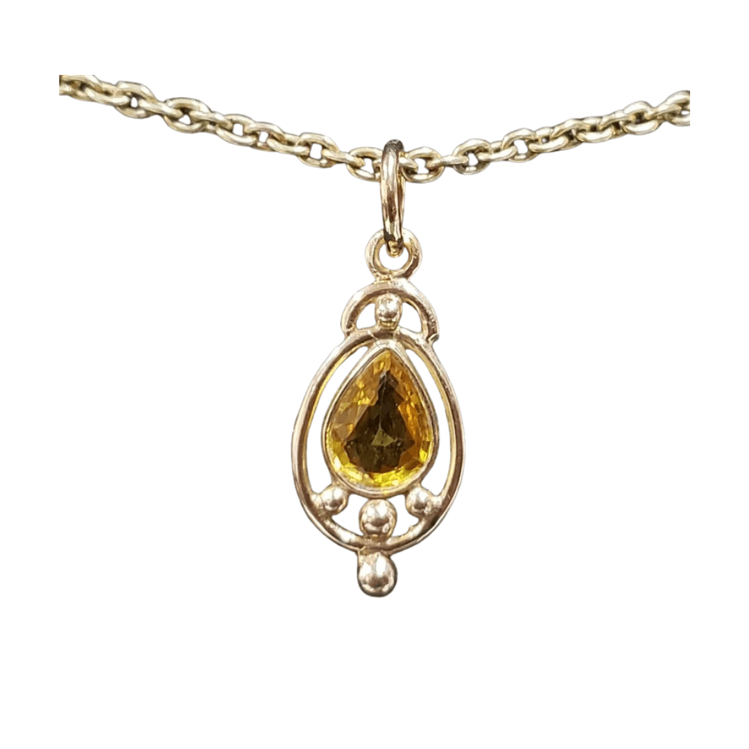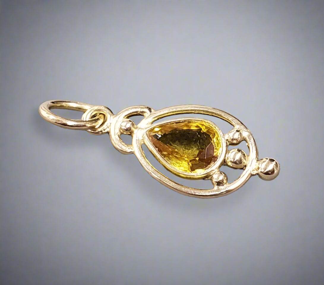 Pear Yellow Sapphire 14k Gold Pendant: Handmade Gemstone Jewelry