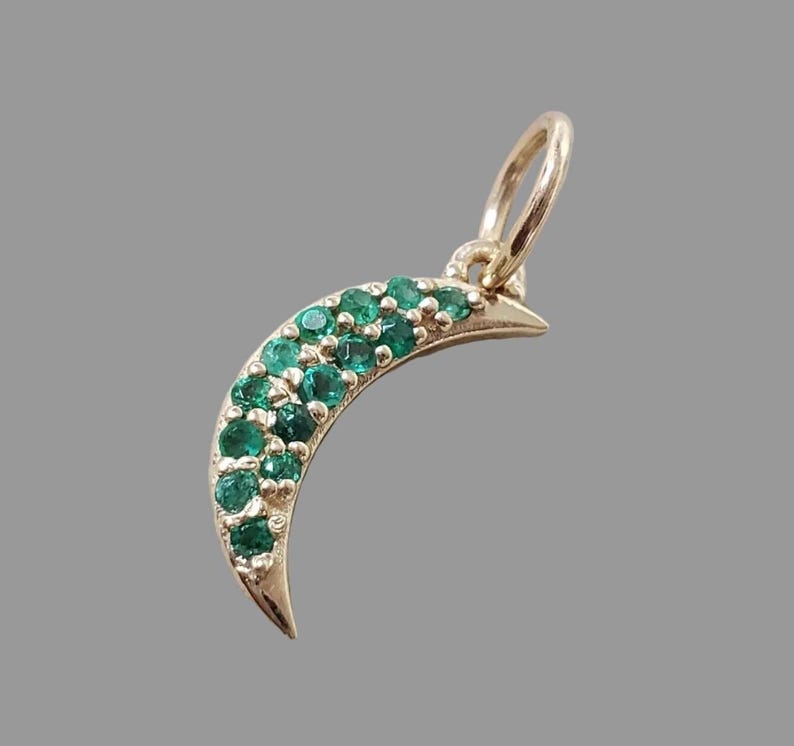 This solid 14k gold emerald pendant makes a thoughtful gift for birthdays, anniversaries, Valentine’s Day, or spiritual occasions. The crescent moon symbolizes growth and protection, while emerald represents harmony and love.