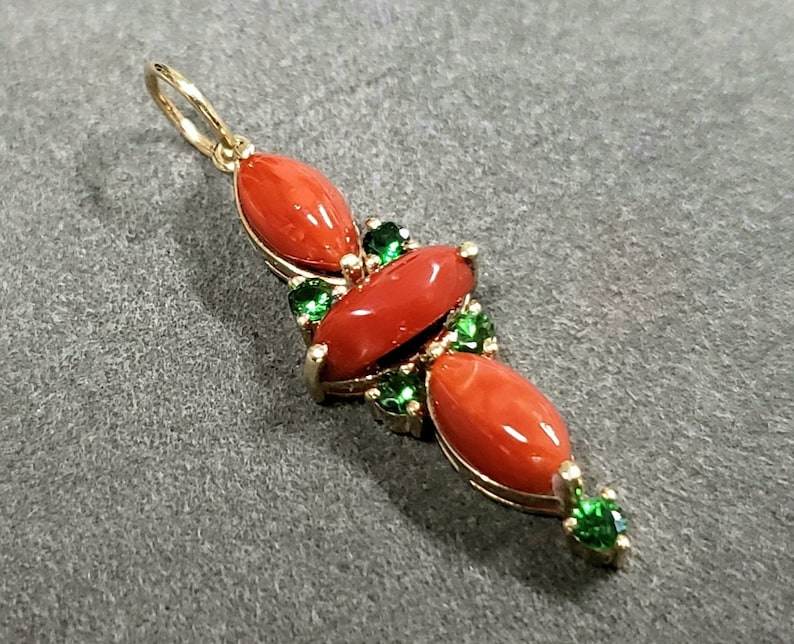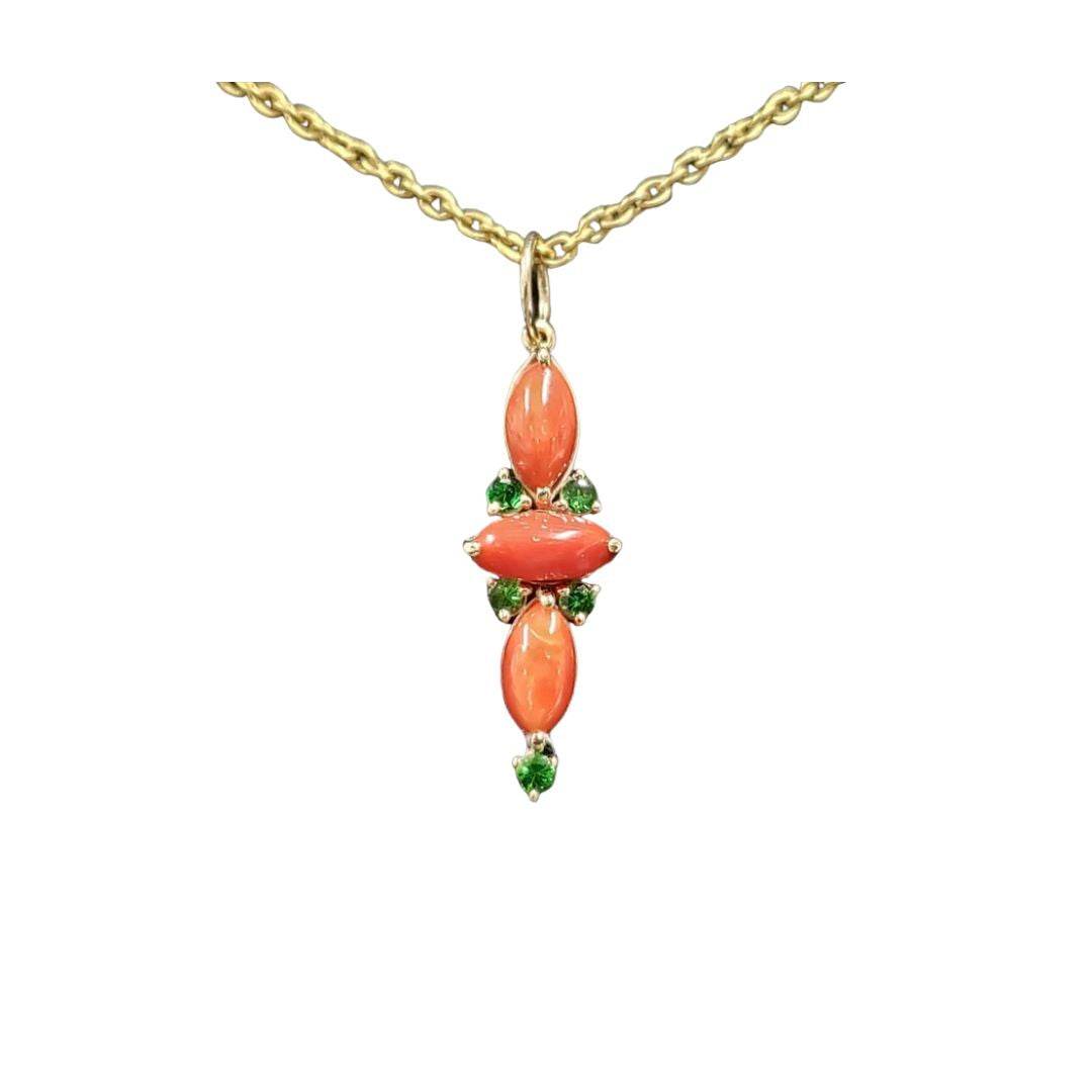 Italian Coral Tsavorite 14k Gold Pendant – Marquise Gemstone Necklace