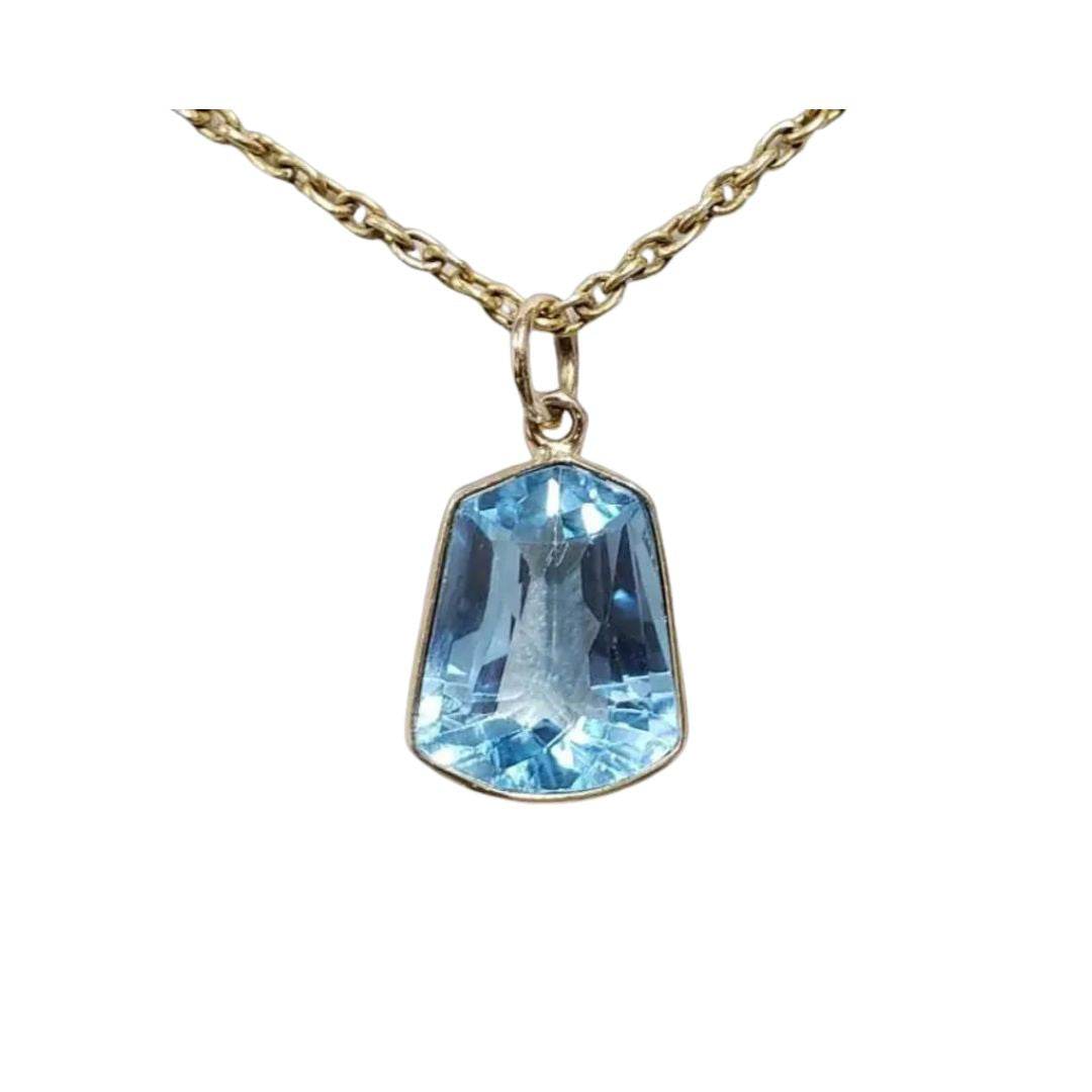 This handmade fine jewelry pendant is a masterpiece of modern craftsmanship and minimal luxury. Designed with a trapeze cut blue topaz gemstone and a sleek 14k gold bezel setting, it brings together bold color and refined simplicity.