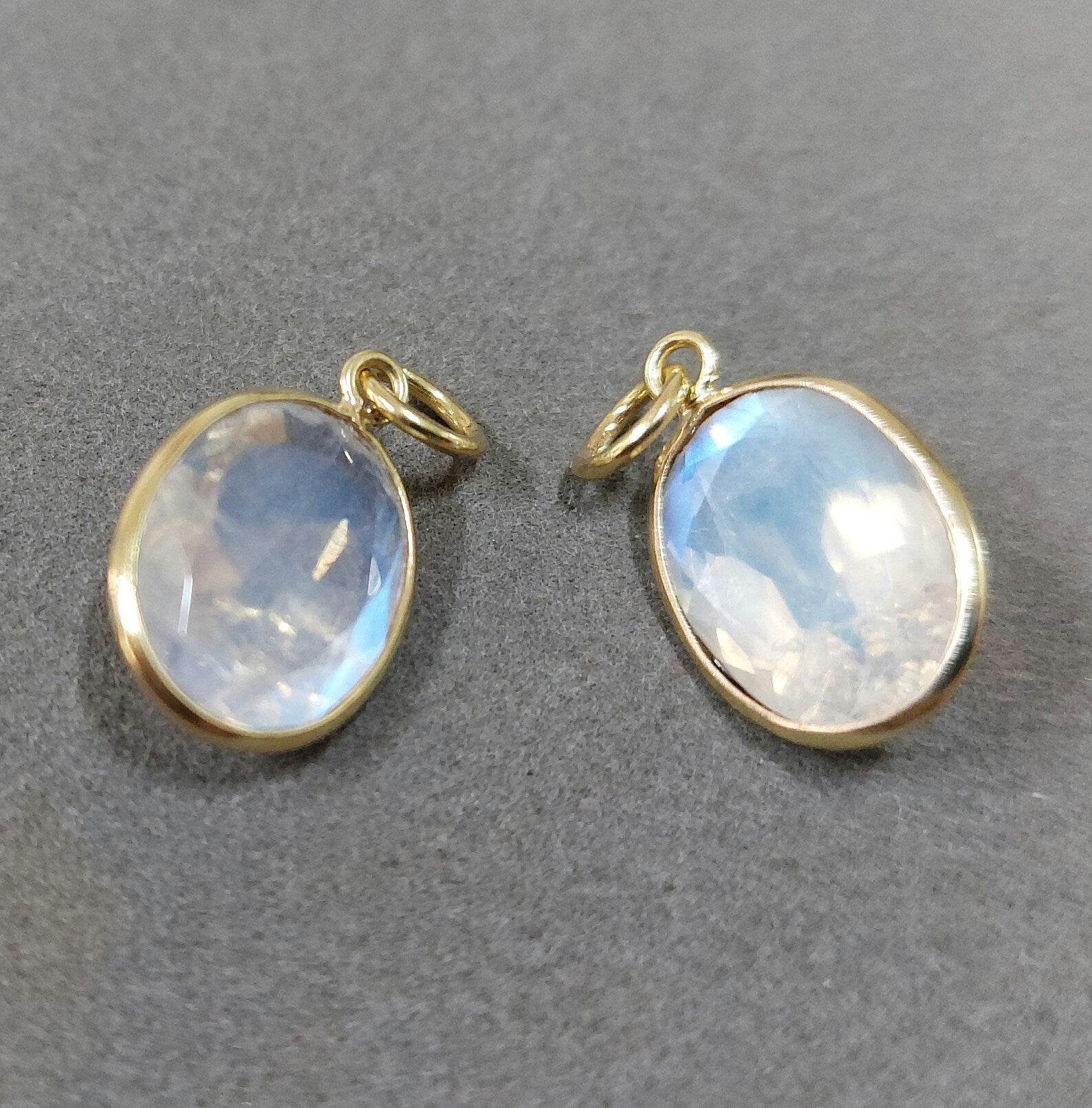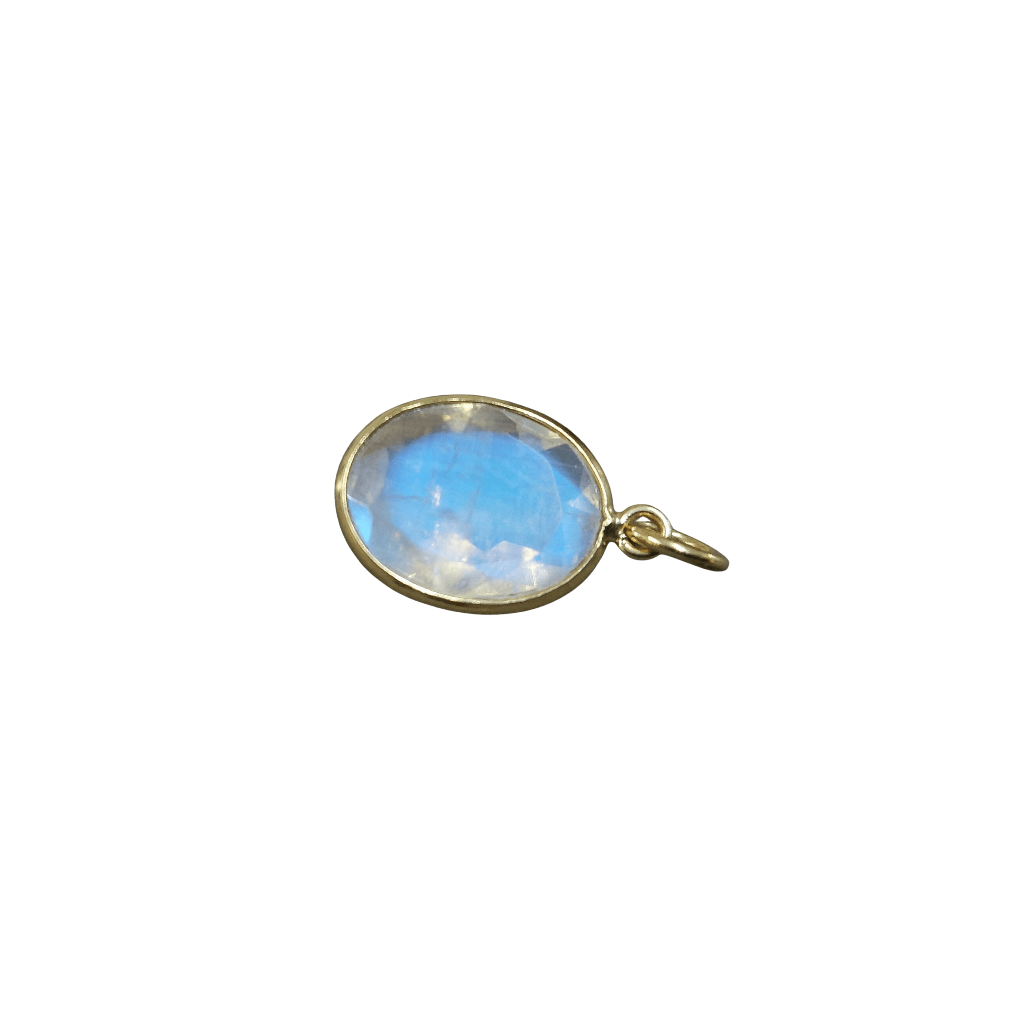 18k Gold Blue Schiller Rainbow Moonstone Pendant