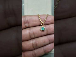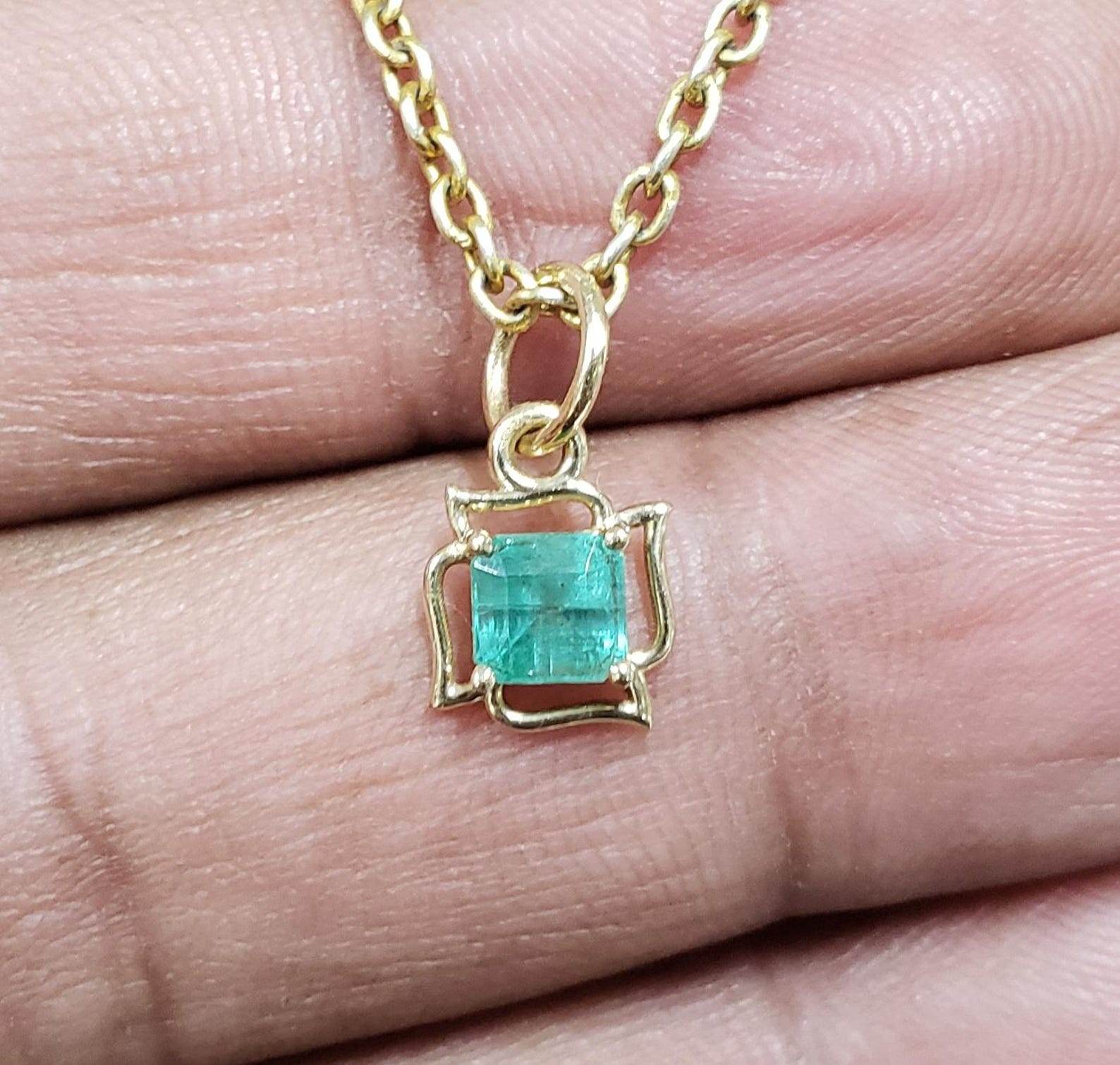 Made from solid 14k gold, the pendant weighs a total of 0.600 grams, including 0.502 grams of pure gold. Each piece is stamped for authenticity and carefully polished to highlight the contrast between the warm glow of gold and the vibrant green of the emerald. The 6 mm bail size makes it versatile for pairing with a variety of chains.