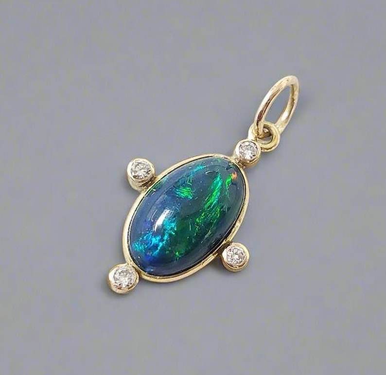 - Anhänger aus 14 Karat Gold mit Opal und Diamant