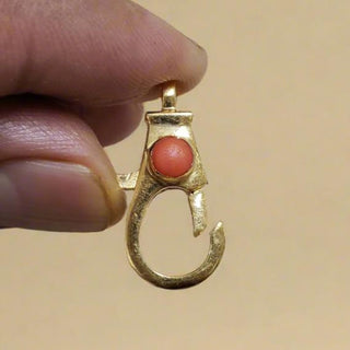 14 Karat Gold, rote Koralle mit Smaragdanhänger