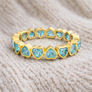 14k Gold Blue Apatite Heart Eternity Band, Apatite Wedding Ring