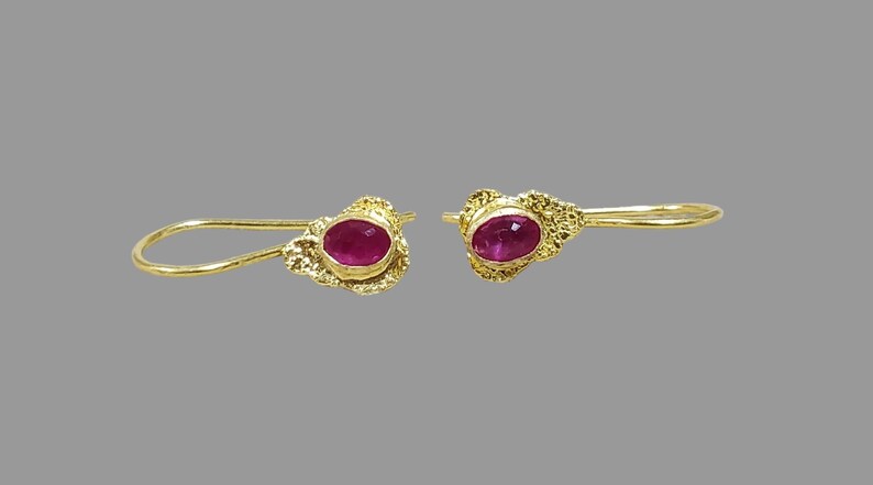 Each Natural Ruby 18k Gold Earring is individually handcrafted by skilled artisans, ensuring exceptional attention to detail.