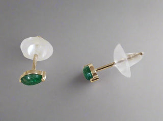 18k Gold Zambian Emerald Marquise Stud Earrings: Minimalist Fine Jewelry