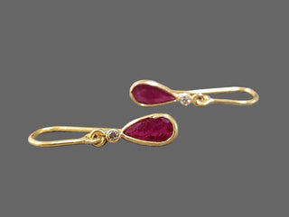 Natural Ruby Diamond 18k Gold Drop Earrings: Dainty Gold Jewelry