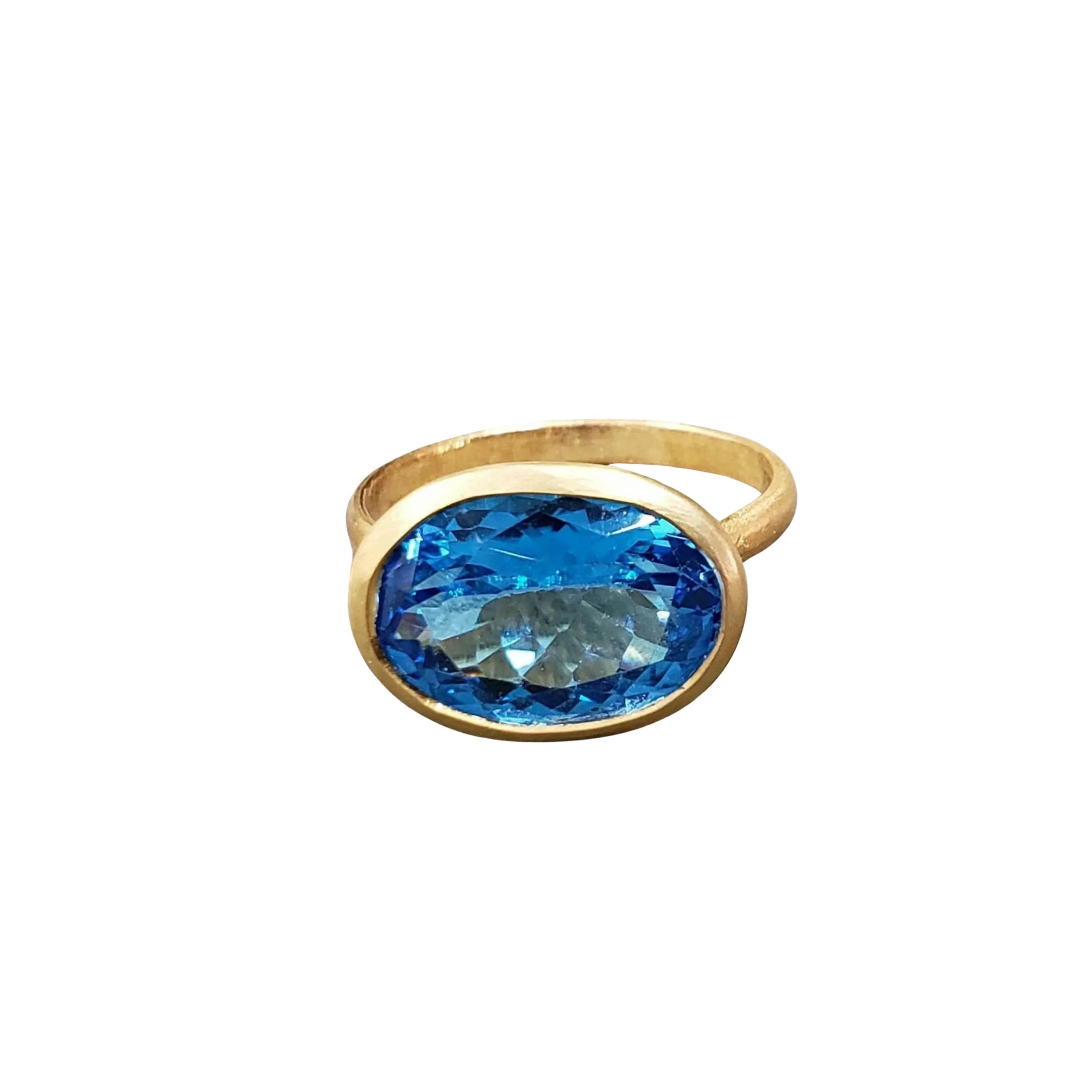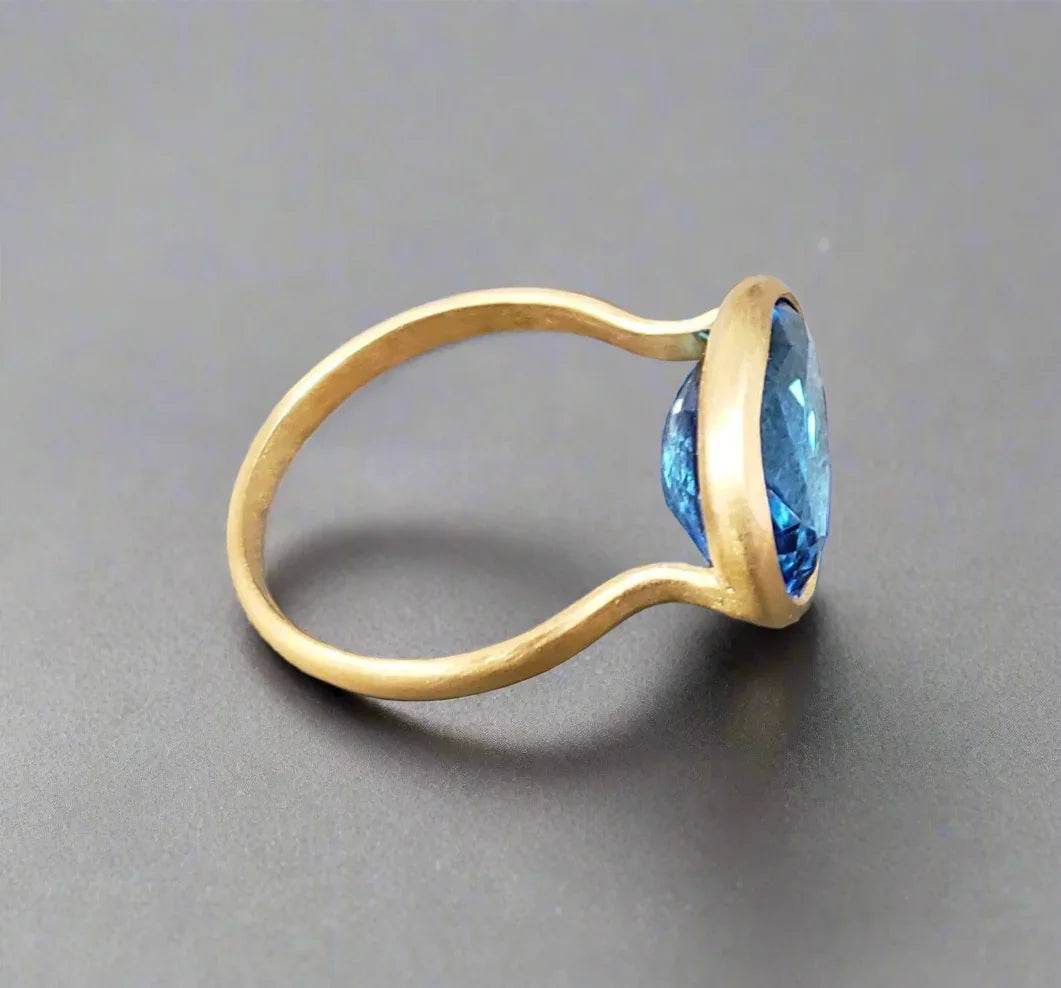 Swiss Blue Topaz Ring in 18k Matte Gold – A Dazzling Handmade Treasure