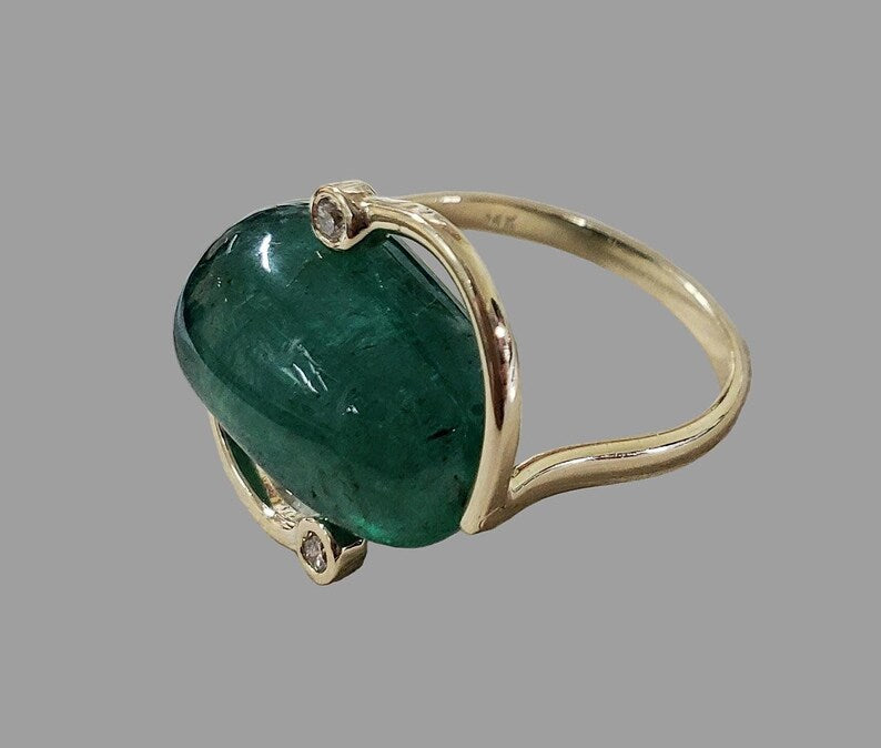 Each handmade emerald ring 14k gold is individually crafted by skilled artisans. The natural shape of the tumble emerald ensures no two rings are ever identical.