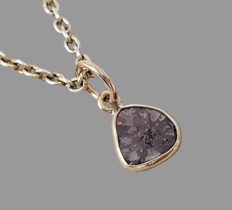 14k Gold Brown Diamond Slice Pendant, Natural Rustic Diamond
