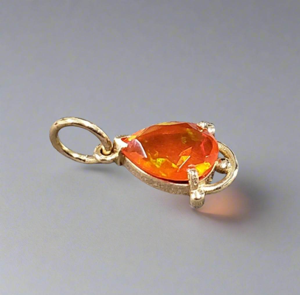 14k Gold Natural Orange Ethiopian Opal Dainty Pendant