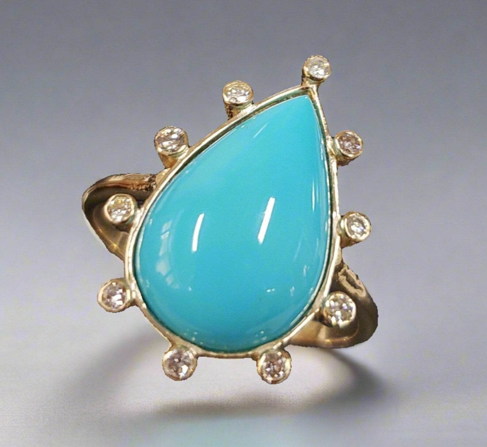 💎 Introduction to the Arizona Turquoise with Diamond 14k Gold Ring