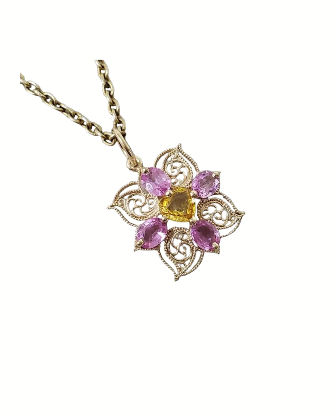 This Pink & Yellow Sapphire Gold Pendant is ideal for: