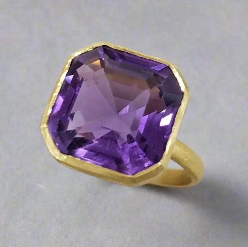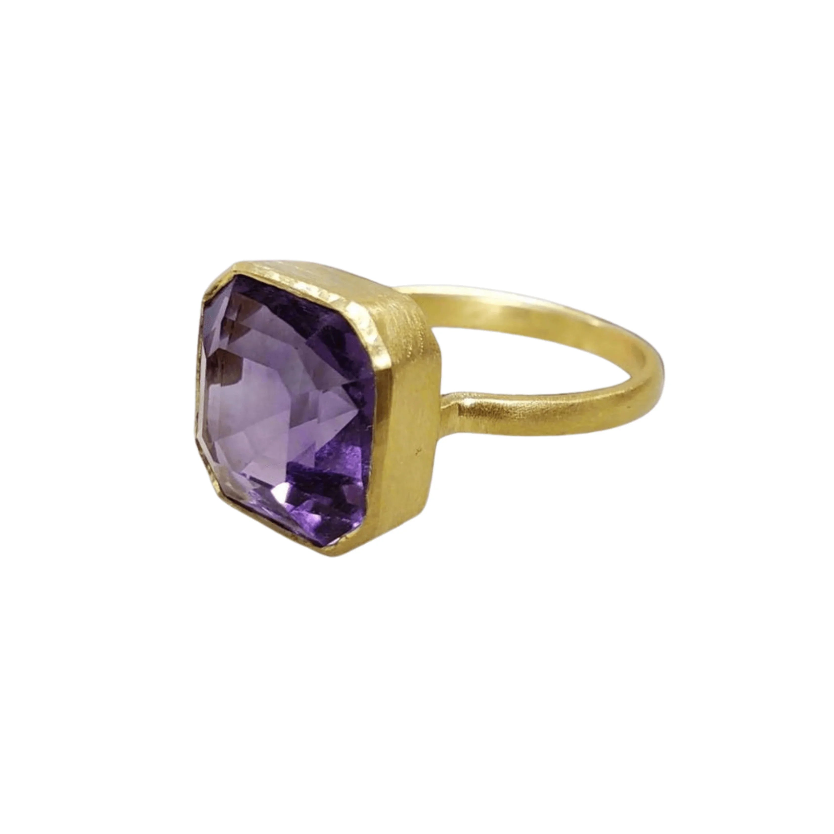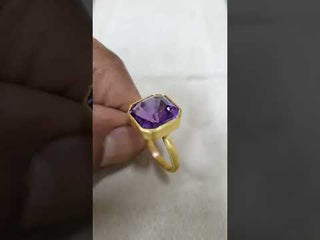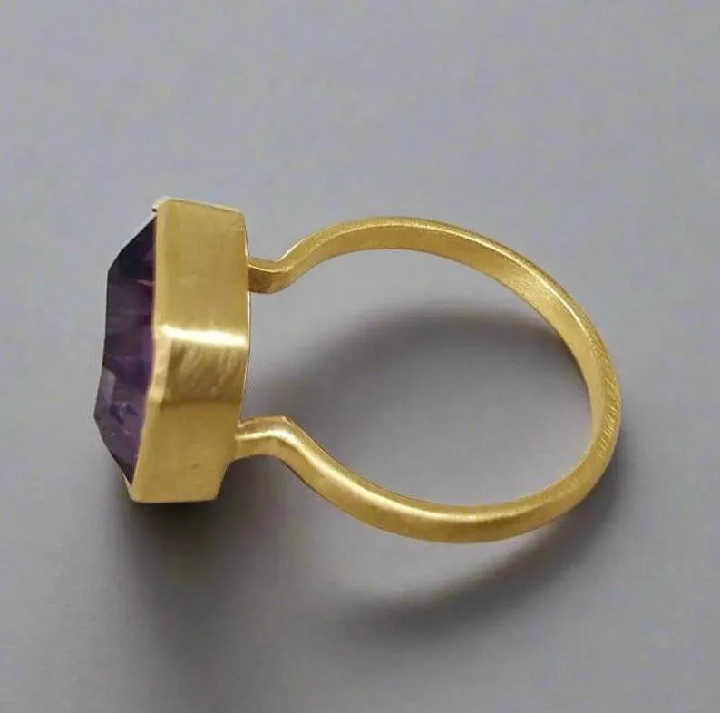 Add a bold and elegant touch to your jewelry collection with our exquisite amethyst gold ring—a timeless piece that effortlessly blends luxury, craftsmanship, and individuality. Made from natural amethyst and pure 14k gold, this ring is not only a statement of style but also a reflection of authenticity and quality. Whether you're seeking a stackable ring, a unique gift, or a centrepiece for your own collection, this handmade ring is a must-have.