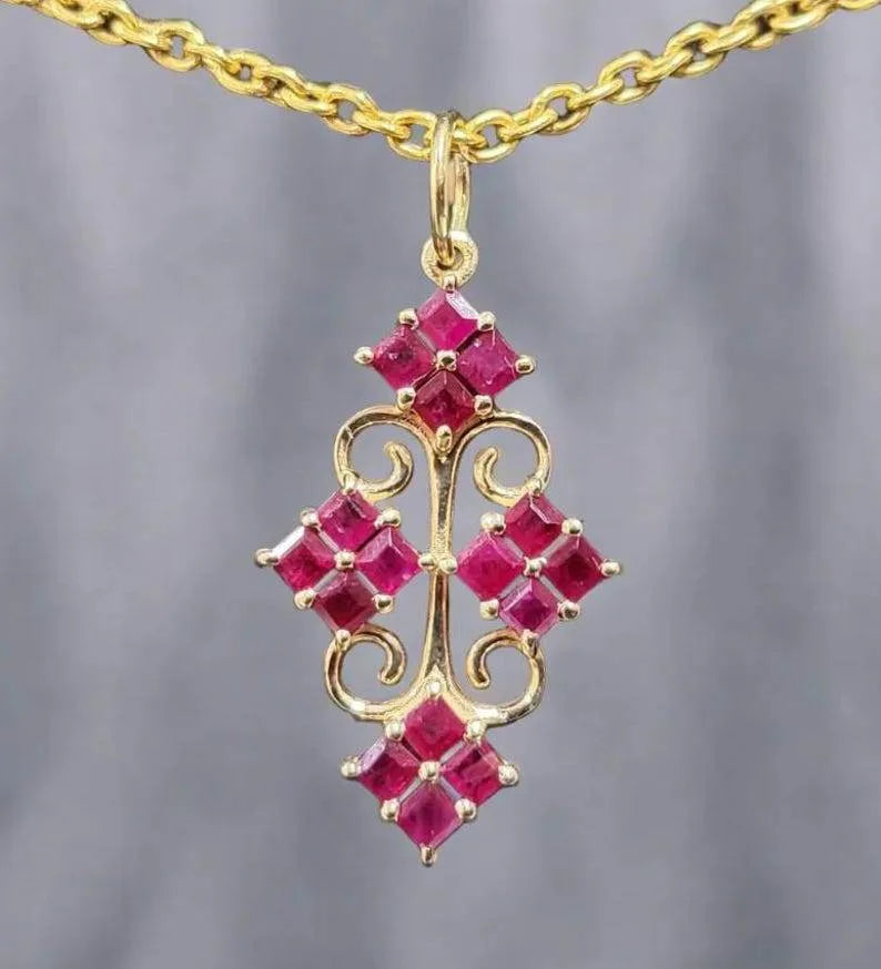 Elevate your elegance with this breathtaking 14k ruby pendant – a perfect fusion of timeless style, artisanal craftsmanship, and precious gemstones. Whether you're searching for a meaningful gift or a standout piece for your own collection, this pendant offers luxurious beauty that never goes unnoticed.