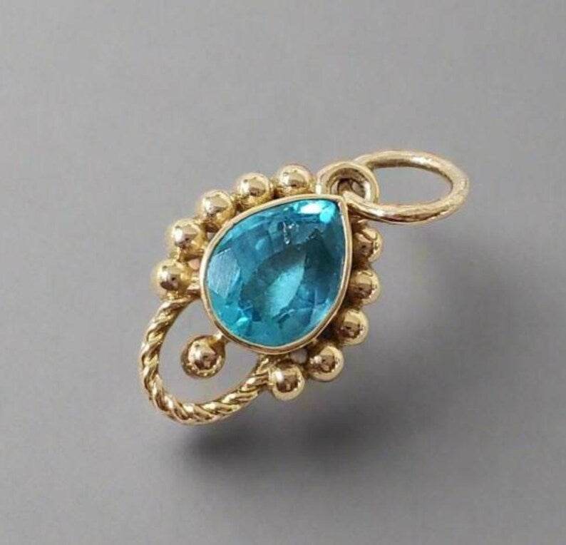 Embrace the serene beauty of the ocean with our 14k Natural Apatite Gold Pendant – Pear Cut Gemstone Necklace, a stunning handmade creation designed to reflect elegance and calm energy. This pendant features a mesmerizing Paraiba Apatite gemstone, also known as Ice Apatite, set in solid 14k gold with delicate granule detailing.