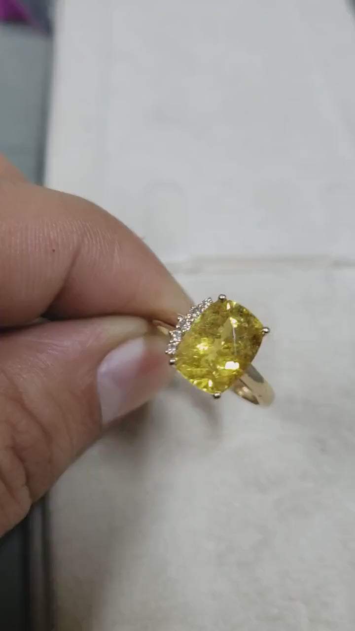 14k Gold Square Emerald Heart Pendant with Yellow Sapphire & Diamond