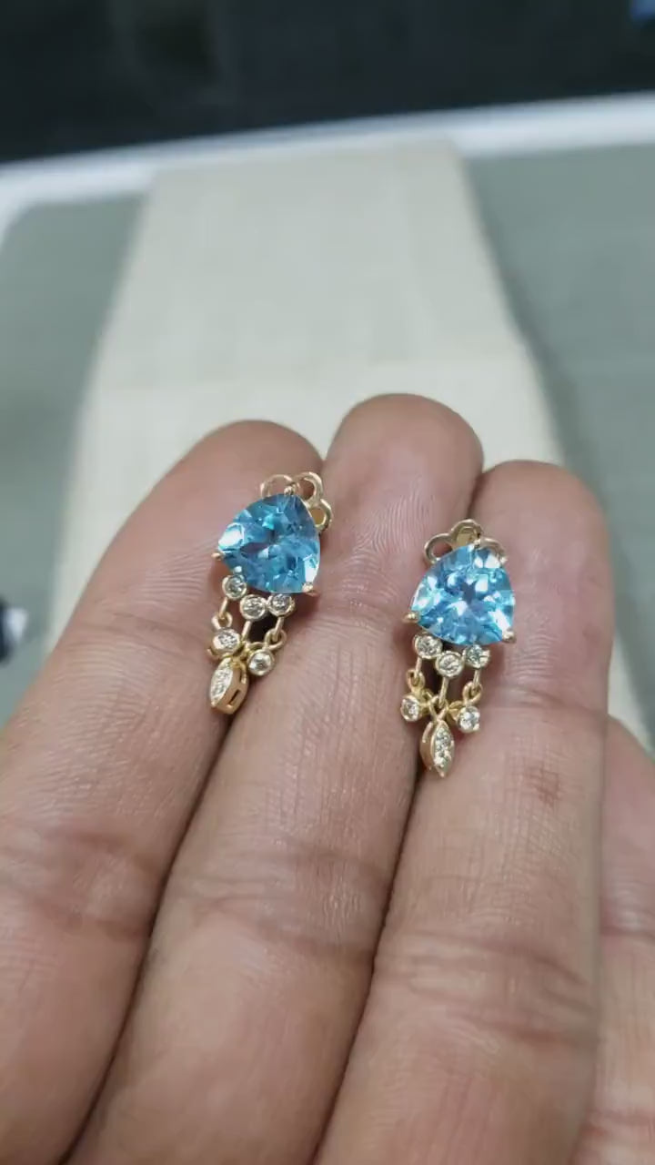 14k Gold Turquoise Heart Stud Earrings with Diamond Accent
