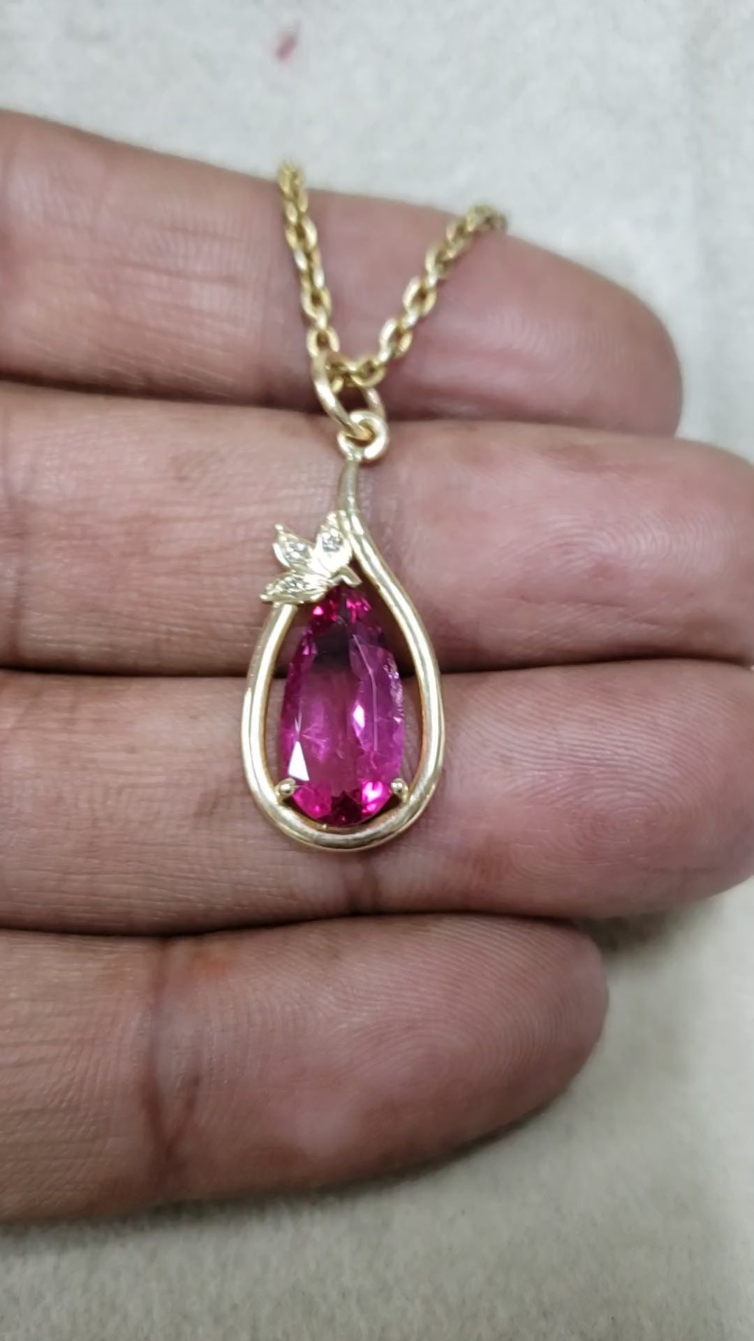 14k Gold Heart Pendant: Pink Tourmaline Cabochon Necklace