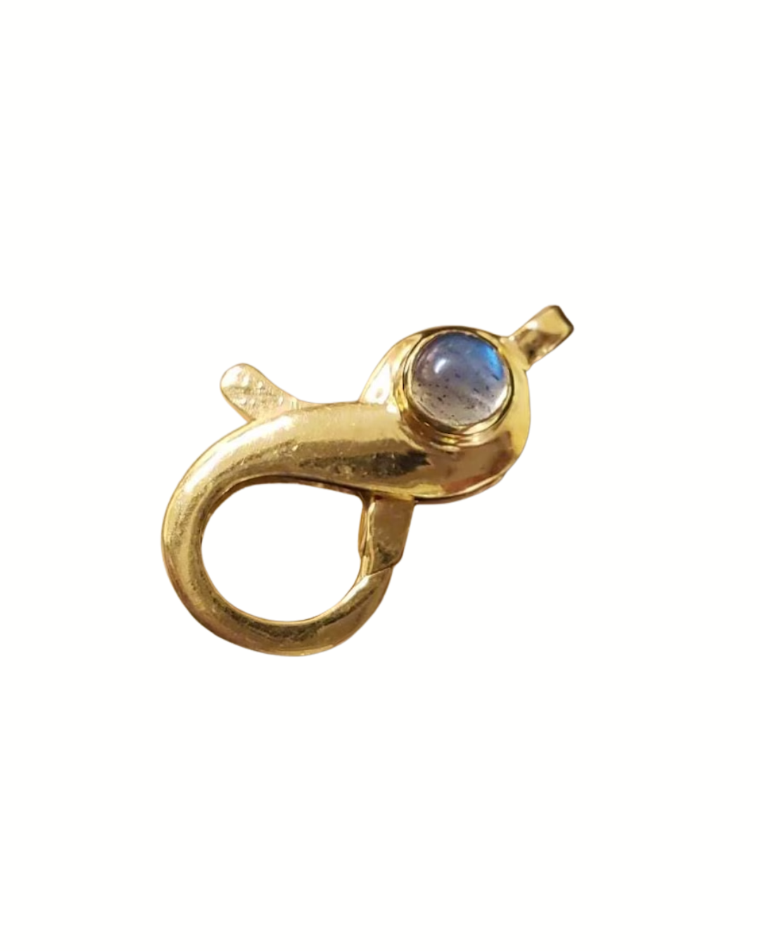 Each clasp is handcrafted using high-quality 925 sterling silver, finished with 18k gold vermeil plating, and set with a natural labradorite gemstone. Our craftsmanship ensures durability, elegance, and premium quality.