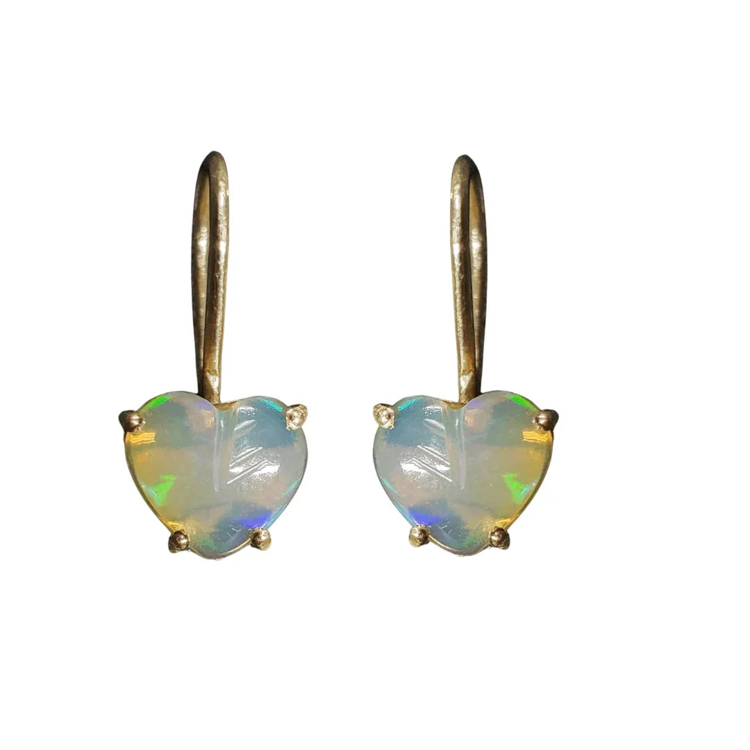 14k Gold Leverback Opal Earrings: Heart Shape Gemstone Jewelry