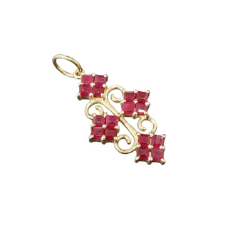 Pendentif paon classique en or 14 carats serti d'aigue-marine et de rubis