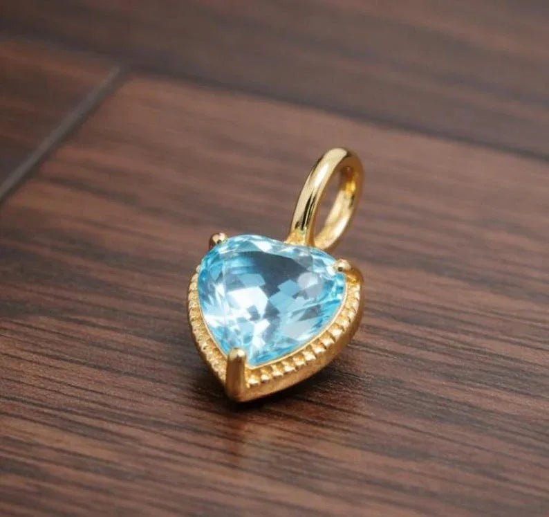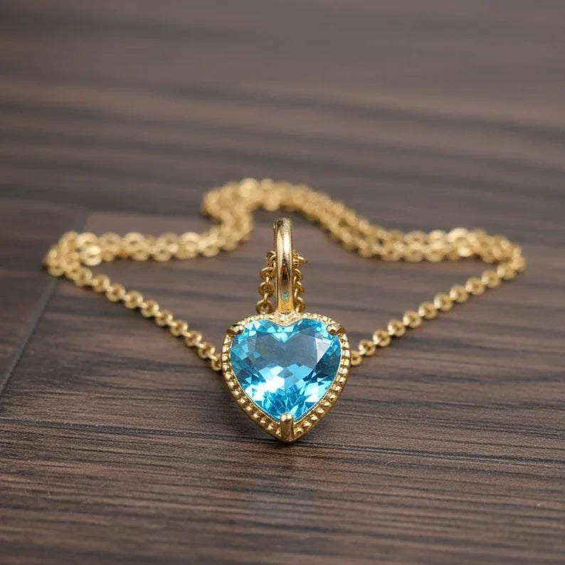 Beauté intemporelle : le cœur du pendentif en or 14 carats avec topaze bleue suisse