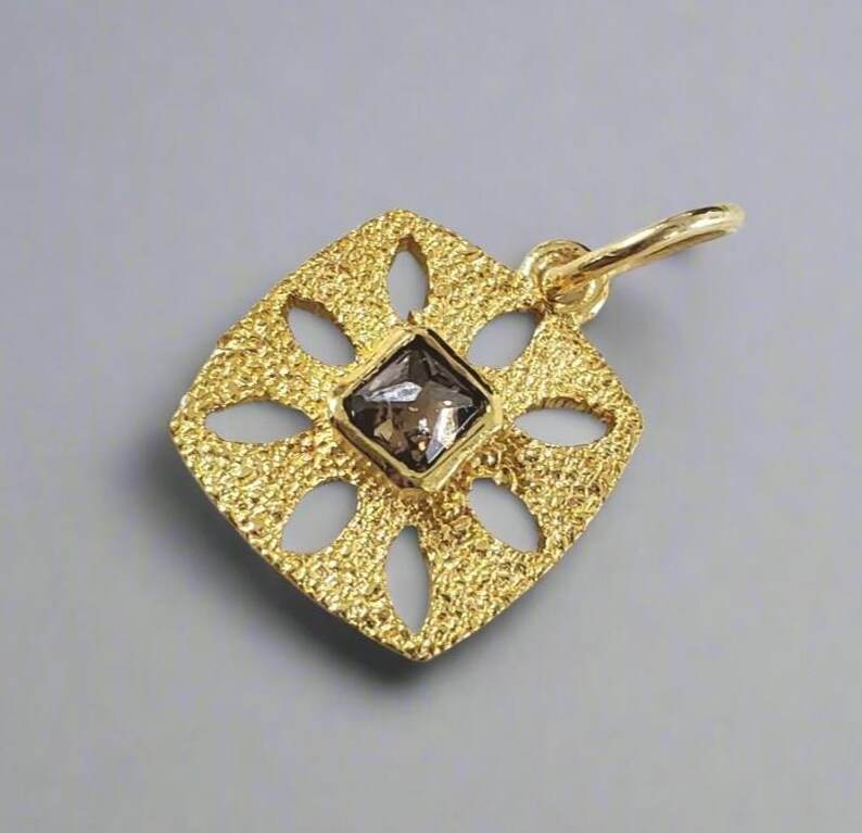 The pendant features a 0.15-carat square-cut brown diamond set securely into the gold. Brown diamonds are admired for their rustic beauty and subtle sparkle, making this pendant stand out as both fashionable and meaningful.