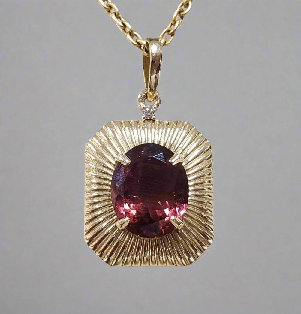 If you are looking for 14k gold gemstone pendants, tourmaline diamond pendants, or handmade textured gold pendants, this Natural Reddish Pink Tourmaline and Diamond Pendant will meet your expectations. Its timeless elegance, gemstone quality, and artisan craftsmanship make it a standout addition to any jewelry collection.