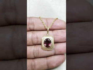 The centerpiece of this pendant is a natural reddish pink tourmaline gemstone weighing an impressive 4.20 carats. Its oval cut, measuring 12x10 mm, highlights the vibrant reddish pink hue and exceptional clarity that tourmaline is famous for. Tourmaline is known for its unique energy and charm, and pink varieties are often associated with love, compassion, and harmony. Accented by a 0.02-carat natural diamond, the pendant carries a subtle sparkle that enhances its overall brilliance.